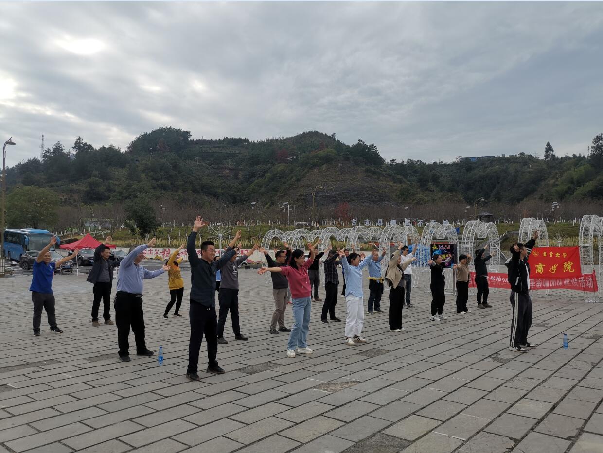 为进一步深入学习贯彻习近平新时代中国特色社会主义思想,持续巩固深化主题教育有效成果,继续推进“学思想、强党性、重实践、建新功”走深走实,引导全院教职工走入基层百姓生活、走入经济社会发展第一线、走入乡村振兴和产业振兴阵地,切实增强全院教职工“躬耕教坛、强国有我”的责任感和使命感,不断加强学院教职工团结力和凝聚力,10月29日,学院组织全院教师赴湘西自治州古丈县开展以“探秘‘网红’经济 助力乡村振兴”为主题的2023年度秋季教师团队建设和主题党日活动。本次活动涵盖了与当地“网红”代表座谈交流、走访参观“网红”代表创业企业和“网红”视频拍摄基地、教师团队素质拓展训练以及对当地经济社会发展情况进行考察调研等内容。