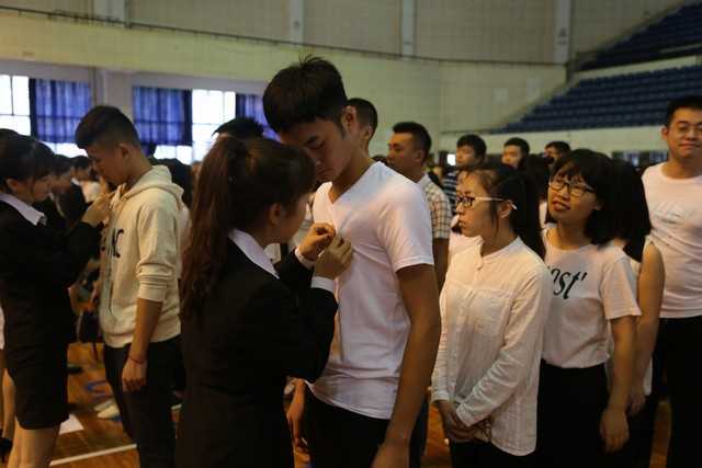 在佩戴校徽仪式上,学院老生代表身着象征着职业经理人的职业装,队伍整齐划一,面带笑容地为2016年专升本新生和2016级本科新生逐一佩戴校徽。"学弟(妹)好"、"awc777万象城娱乐官网欢迎你"、"希望我们成为朋友",老生一句句温馨的话语,让新生倍感温暖。戴上校徽的那一刻,新生倍感自豪,也在心中铭刻下了"以人名校、以业报国"的校训。老生为新生佩戴校徽,不仅体现了老生对新生的热烈欢迎,更加体现了学院文化的传承和发扬。