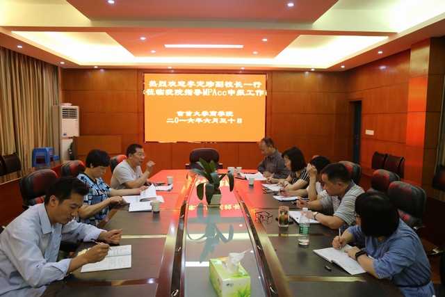 6月30日上午,副校长李定珍率研究生处处长佘佐辰和研究生处相关科室负责人就MPACC专业学位申报事宜来万象城官网调研。院长田宇、副院长彭耿、会计系主任张霞以及学院MPACC专业学位申报团队人员参加了调研。