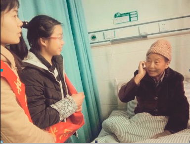 到达协和医院后,护士给志愿者们绶带,并且耐心亲切地为志愿者讲解医院常规流程。安排到门诊部的志愿者们积极主动地为就诊的病人提供向导、陪同输液等等。同时,安排到住院部的志愿者们帮助病人办理住院手续,与住院部的病人交流聊天,传递正能量。