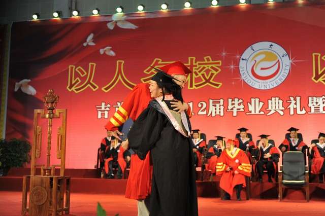 在熟悉而豪迈的校歌声中,万象城官网950名获得学士学位的毕业生和37名获得硕士学位的研究生按照先后顺序趋前向肖湘愚校长行鞠躬礼,肖湘愚校长微笑着与学生亲切握手,将学位证书双手颁发给学生并送上祝贺。观礼台上,亲友们纷纷用相机聚焦舞台,记录下这神圣而难忘的瞬间。毕业生接过学位证书后,向培育了他们四年的恩师深深鞠上一躬。