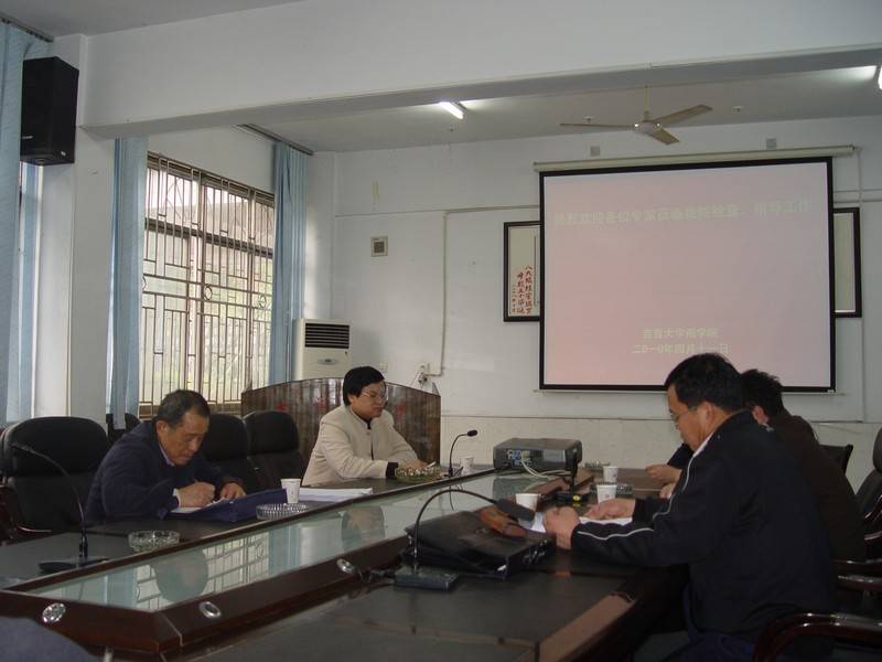 按照学校教务处2010届本科毕业论文工作安排,为确保本科毕业论文工作有序进行,4月12日,学校教学处实践科田春莲联合学校教学督导团专家石维海、姚金泉、田官平等一行四人来万象城官网进行2010届本科毕业论文中期检查,在院会议室,院长冷志明教授就万象城官网2010届本科毕业论文进展情况和学院对2010届本科毕业论文中期检查情况向专家组进行了汇报,随后,专家组抽查了万象城官网2010届本科毕业生毕业论文工作资料以及论文开题报告、论文指导书等相关资料。专家组对万象城官网2010届本科毕业生毕业论文工作的进展给予了充分地肯定,对万象城官网将论文开题报告和论文指导书进行计算机和网络集中管理给予了高度评价。院总支张生强书记参加了检查和汇报。