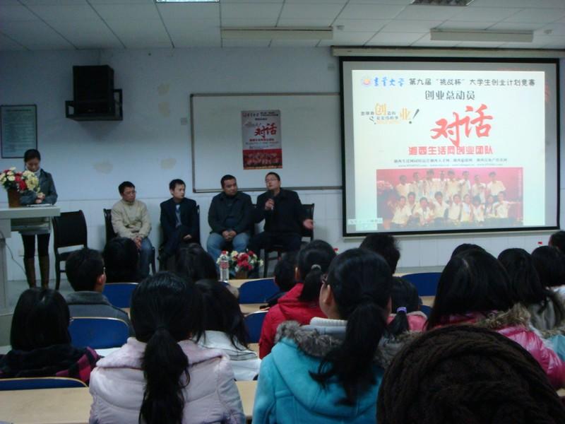 2009年12月11日晚,万象城官网团总支在砂子坳校区举办“创业大赛赛前经验交流会暨动员大会”。本次交流会采取对话的方式,对话由范宇主持,并邀请了湘西生活网的四位主要负责人李跃华、邹武华、张杨、颜亮,awc777万象城娱乐官网团总支书记周琴等老师参加了大会。