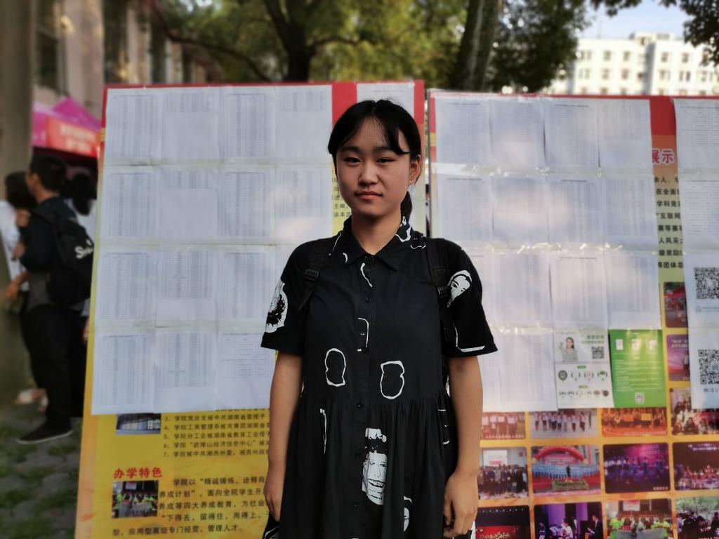 来自甘肃现就读于19级工商管理二班的杨欢,刚刚踏入湘西就对南方酷热的天气有了亲身感受。面对着陌生的新环境,之前没有在校住宿过的她害怕自己会不适应。初次走进宿舍的她就发现室友们都活泼开朗,相谈甚欢,她开始忘掉离家求学的孤单。这世上总有些温暖会在想象之外不期而至,这些生活中的感动,将会成为她四年中最美好的记忆。当问及她在大学期间想改变什么时,她说:“我希望自己在大学期间能改掉自己赖床的毛病,希望自己能够早起呼吸一下早晨的新鲜空气。” 新的环境将给每一位新生带来新的挑战,希望每一个新生都能在这陌生的环境中鼓励自己,改变自己,丰富自己。