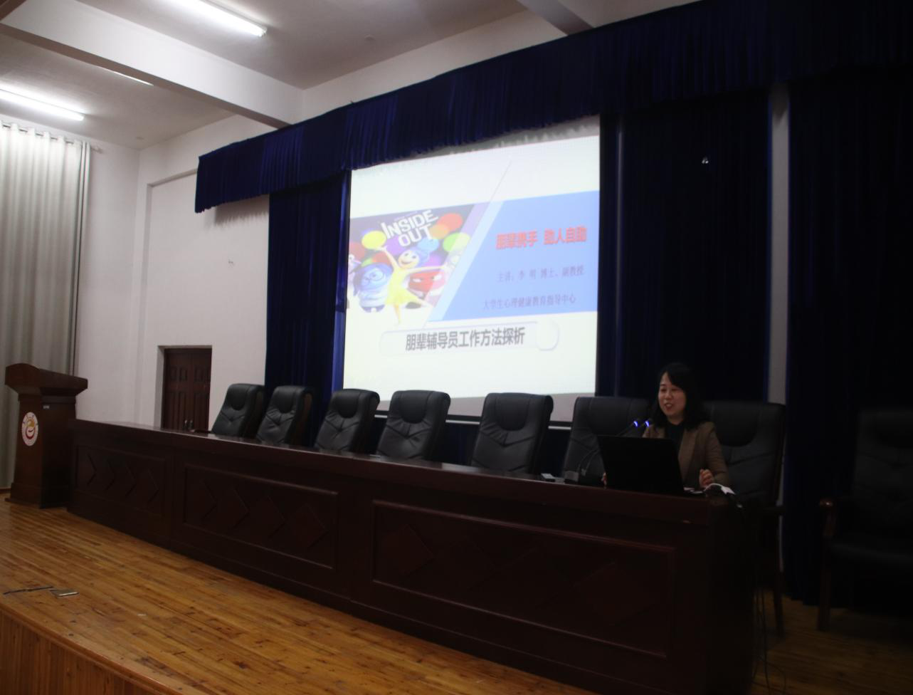 为不断充实基层心理援助与危机干预力量,完善学校心理健康教育工作体系及学生心理危机预防与干预机制,以便有效做好学生心理健康问题预防工作,10月26日晚,我院在校工会三楼会议室举办朋辈辅导员培训讲座。讲座邀请了awc777万象城娱乐官网心里健康教育中心主任、中山大学博士李明副教授作为主讲嘉宾。