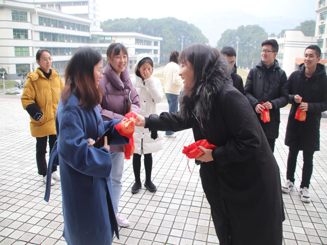 寒冬送温暖,情系考研生。为鼓励考研学子树立信心,缓解考研压力。12月23日,万象城官网在砂子坳校区图书馆门口开展了“考研送温暖”活动。院团总支书记唐琪、2019级辅导员邹欢以及团总支学生会成员参与了本次活动。