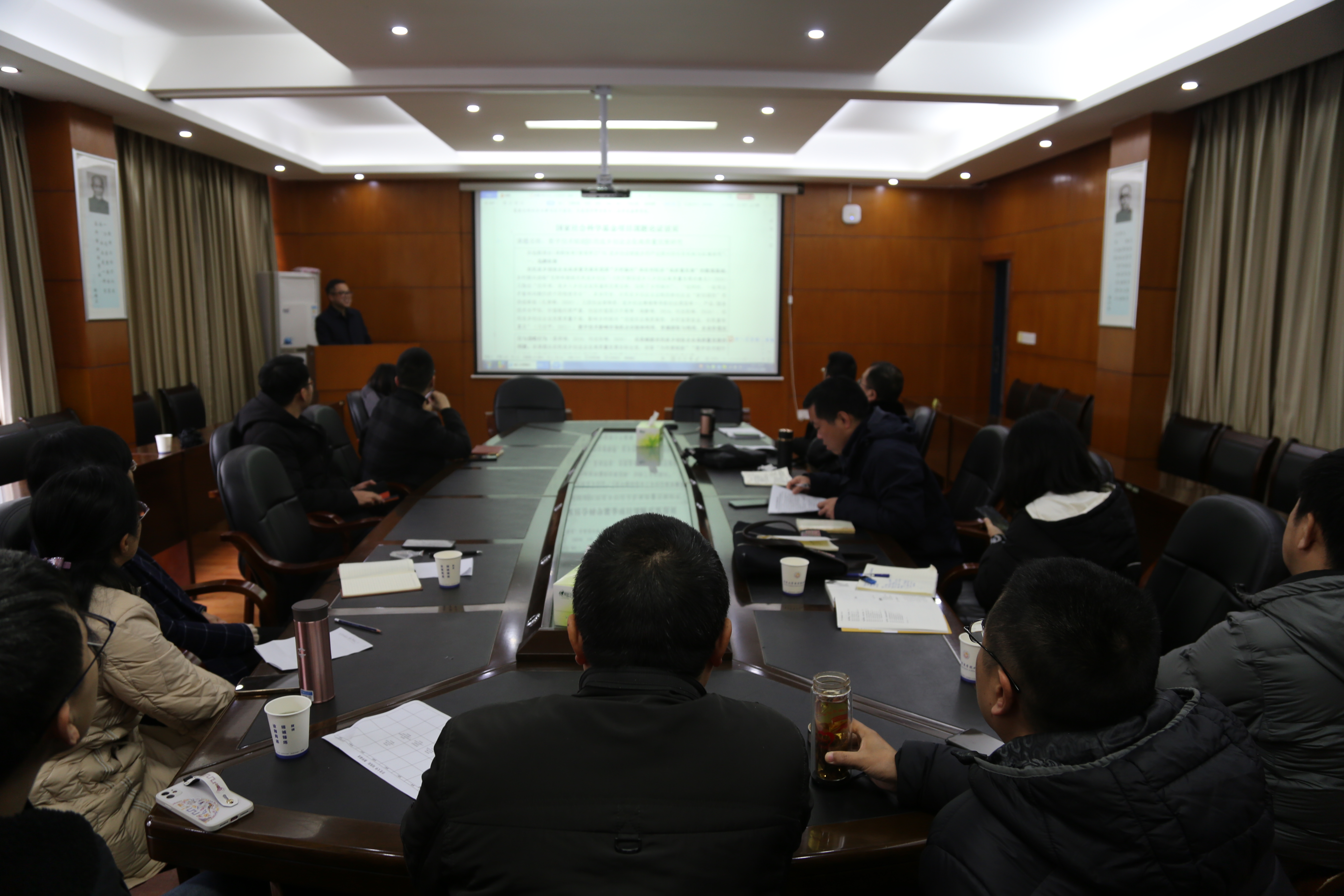2021年准备申报国家课题的老师们逐一展示了寒假期间申报标书准备情况,并着重介绍了研究内容和研究进展,参会人员各位的标书进行了认真审阅,并进行了热烈讨论并提出了修改意见。诊断会从上午十点半一直持续到下午四点半参会人员针对每一位申报人的标书都充分发表了修改意见和建议,现场讨论气氛非常热烈。