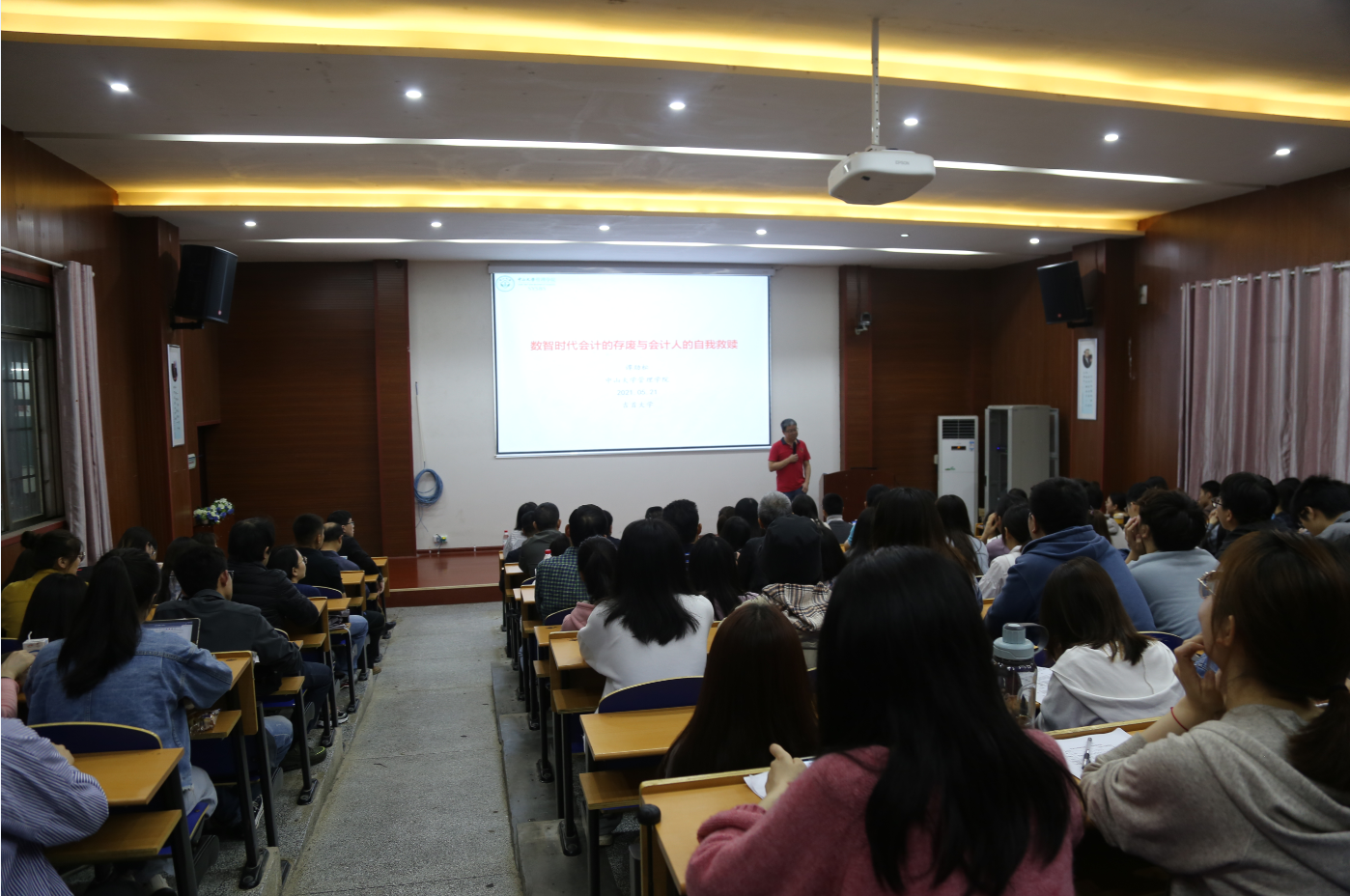 5月22日上午,由中国会计学会、全国会计专业学位研究生教育指导委员会主办,学院承办的谭劲松教授会计名家公益大讲堂”活动在学院学术报告厅举行。我国著名会计学家、全国会计专业学位研究生(MPAcc)教学指导委员会委员、中山大学管理学院谭劲松教授应邀参加了本次活动,并面向学院师生进行了一场主题为“数智时代会计的存废与会计人的救赎”的讲座。