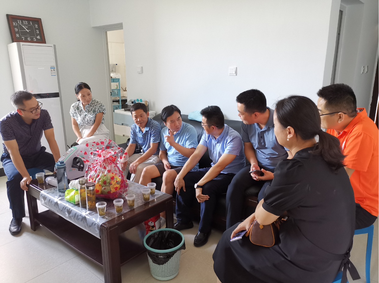 9月10日下午,院党委书记李启贵,院党委副书记、院长丁建军,院党委副书记、院分工会主席胡锦湘,副院长龙海军、张琰飞率院办公室主任王泳兴,院团委书记唐琪来到学院李政忙、李琼、唐振宇三位教师家中进行走访慰问,向他们送上节日的问候和祝福。三位教师均表示,学院领导到家中进行走访慰问,让他们感受到了awc777万象城娱乐官网这个大家庭的温暖,也让他们感受到了作为一名教师的无尚光荣,他们将把学院领导的殷切关怀转化为接续奋斗的动力,为学院持续发展做出新贡献。
