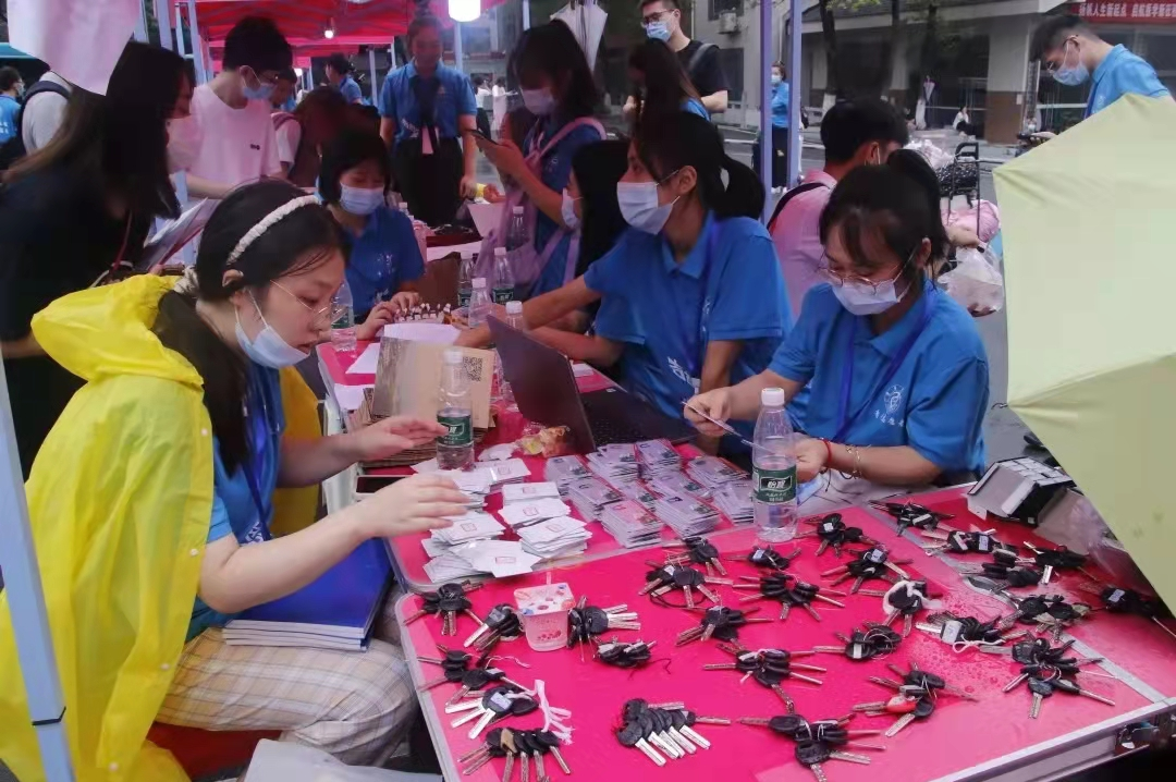 君去我愿送,君来我自迎;待到辞君日,你我更相亲。一届又一届的学生面孔虽不相同,但万象城官网领导老师们却热情如初:安排迎新、指导工作、询问情况、下寝看望,在这暑气未消的日子里,他们湿了衣襟,却内心澎湃,只为等到你----2021级的孩子们。