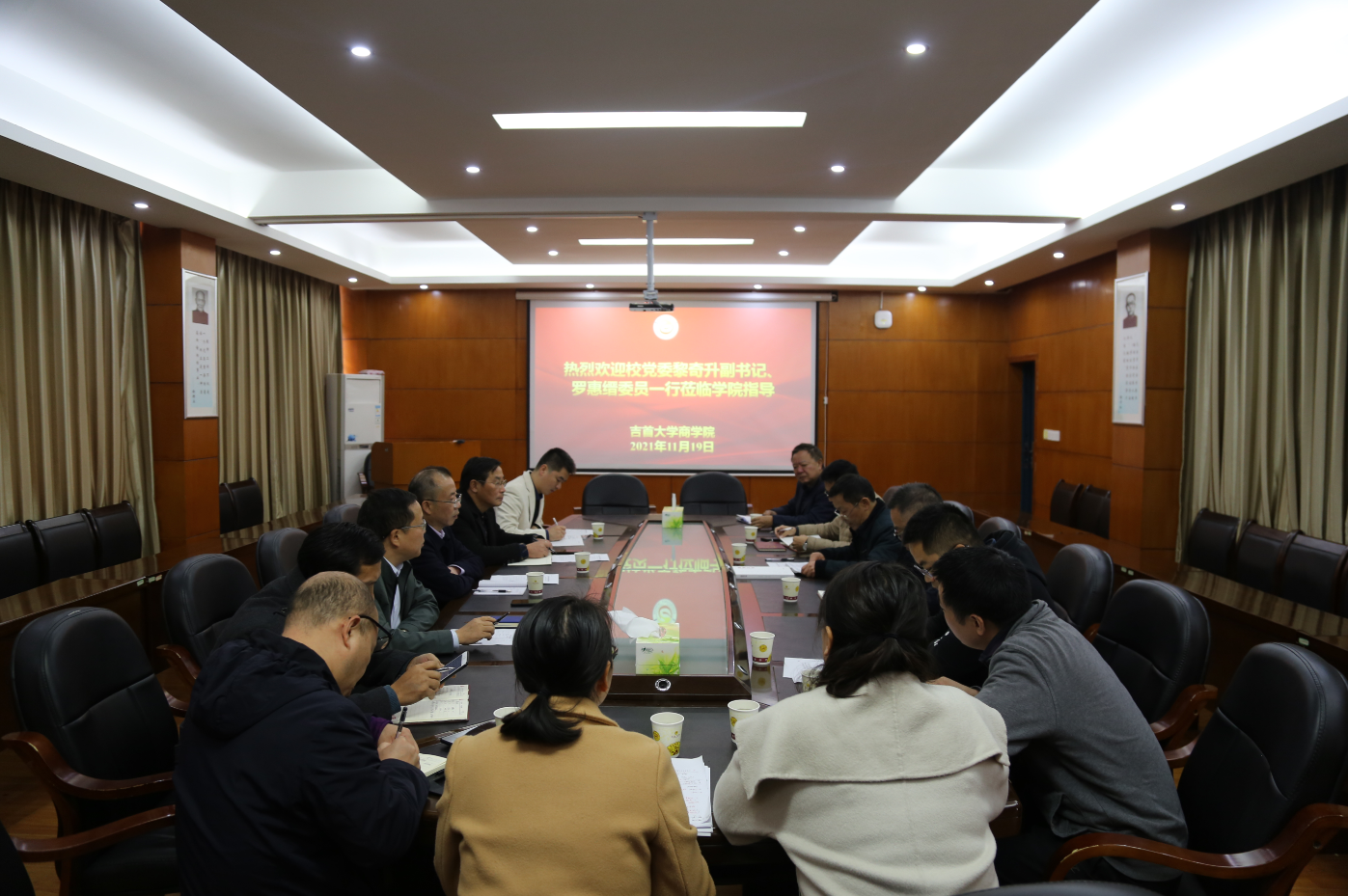 11月19日上午,校党委副书记黎奇升,校党委委员、宣传部部长罗惠缙率校党委组织部常务副部长李洪雄,校党委组织部干部科科长吴岳衡等一行来万象城官网就基层党建工作开展调研和座谈。院党政班子成员和学院党委各支部书记参加了调研座谈。