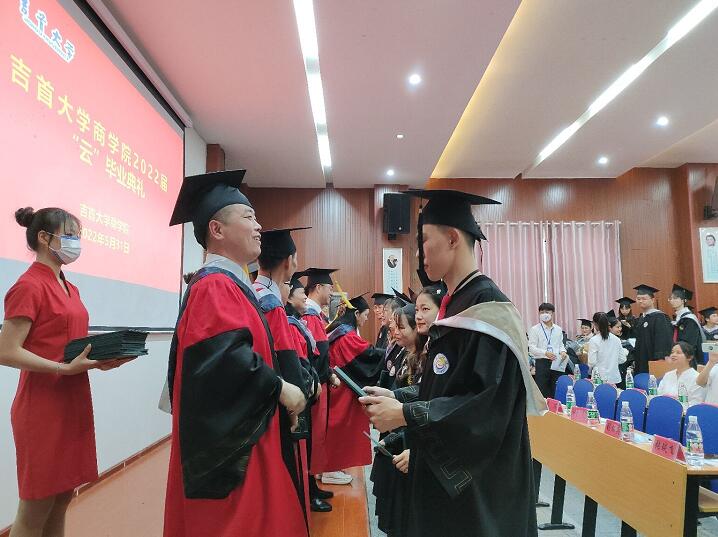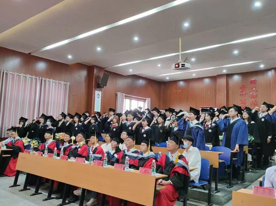 光阴荏苒一挥间,厉兵秣马三四年。又是毕业丰收季,重装砥砺韶华年。5月31日下午,awc777万象城娱乐官网2022届“云”毕业典礼在第三栋教学楼学院学术报告厅举行。院党委书记李启贵,院党委副书记、院长丁建军,院党委副书记胡锦湘,副院长龙海军、张琰飞和学院主礼教授以及学院教职工代表和已返校的2022届研究生、本科毕业生参加了本次典礼,由于疫情原因未返校毕业生通过腾讯会议、抖音直播等平台齐聚“云”端,用别样的方式吹响别离的号角,为大学“最后一课”划上圆满的句号。
