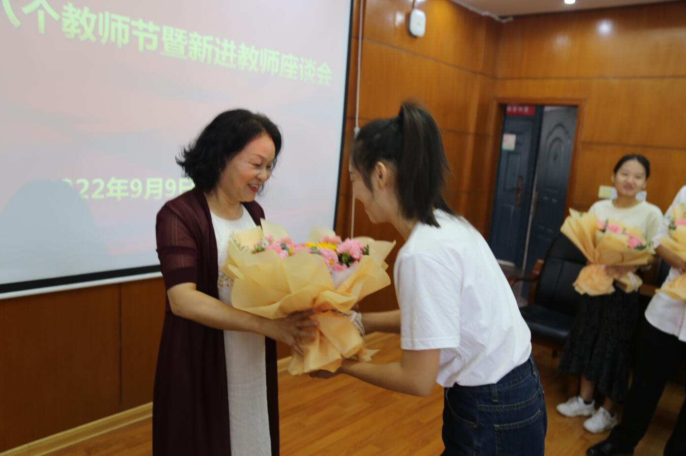 2022年9月10日是第38个教师节。9月9日,学院通过召开新进教师座谈会、新进教师向“师徒结对”的老教师敬献鲜花、到部分教师家中进行走访慰问等多种形式庆祝教师节。