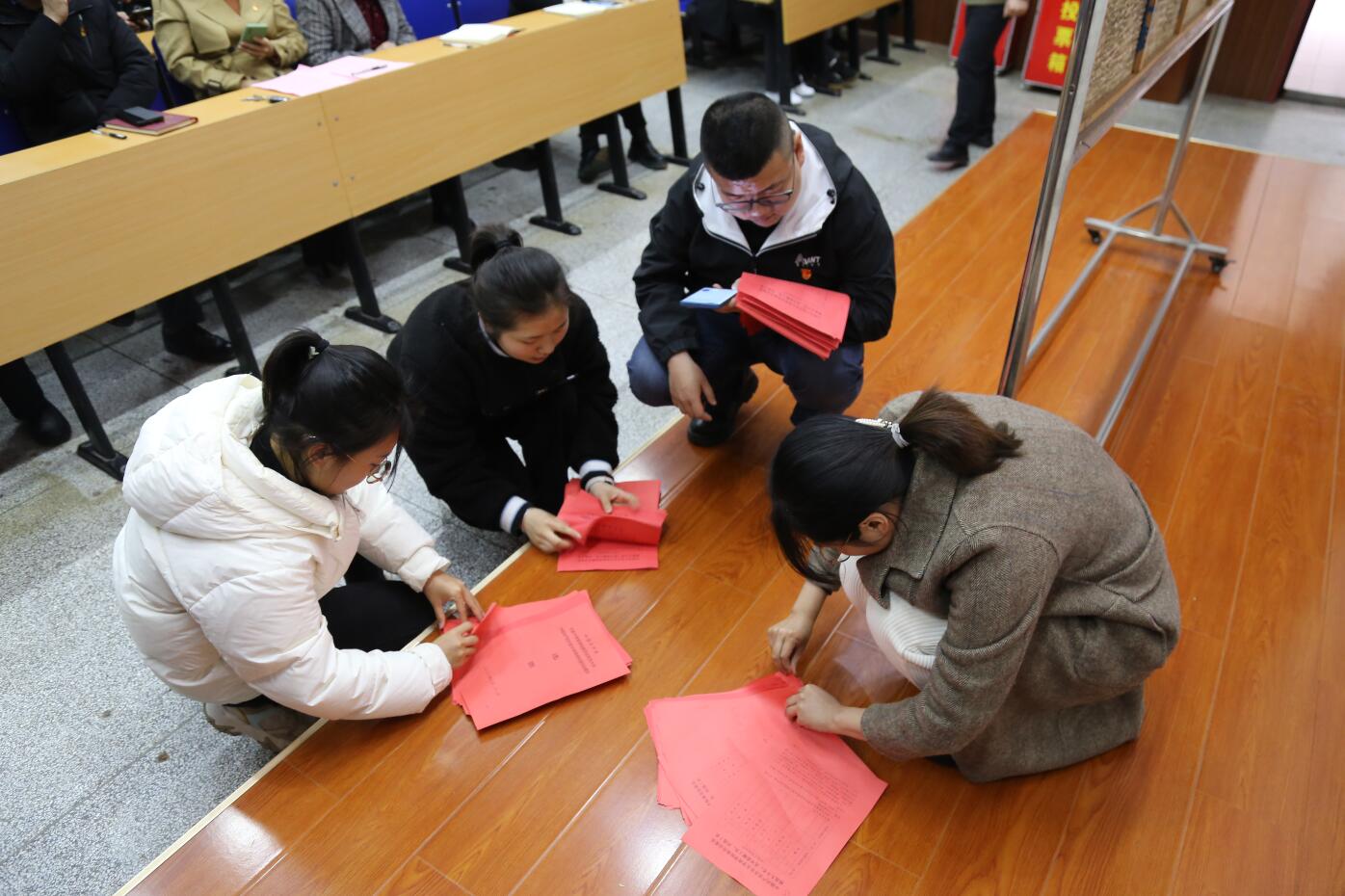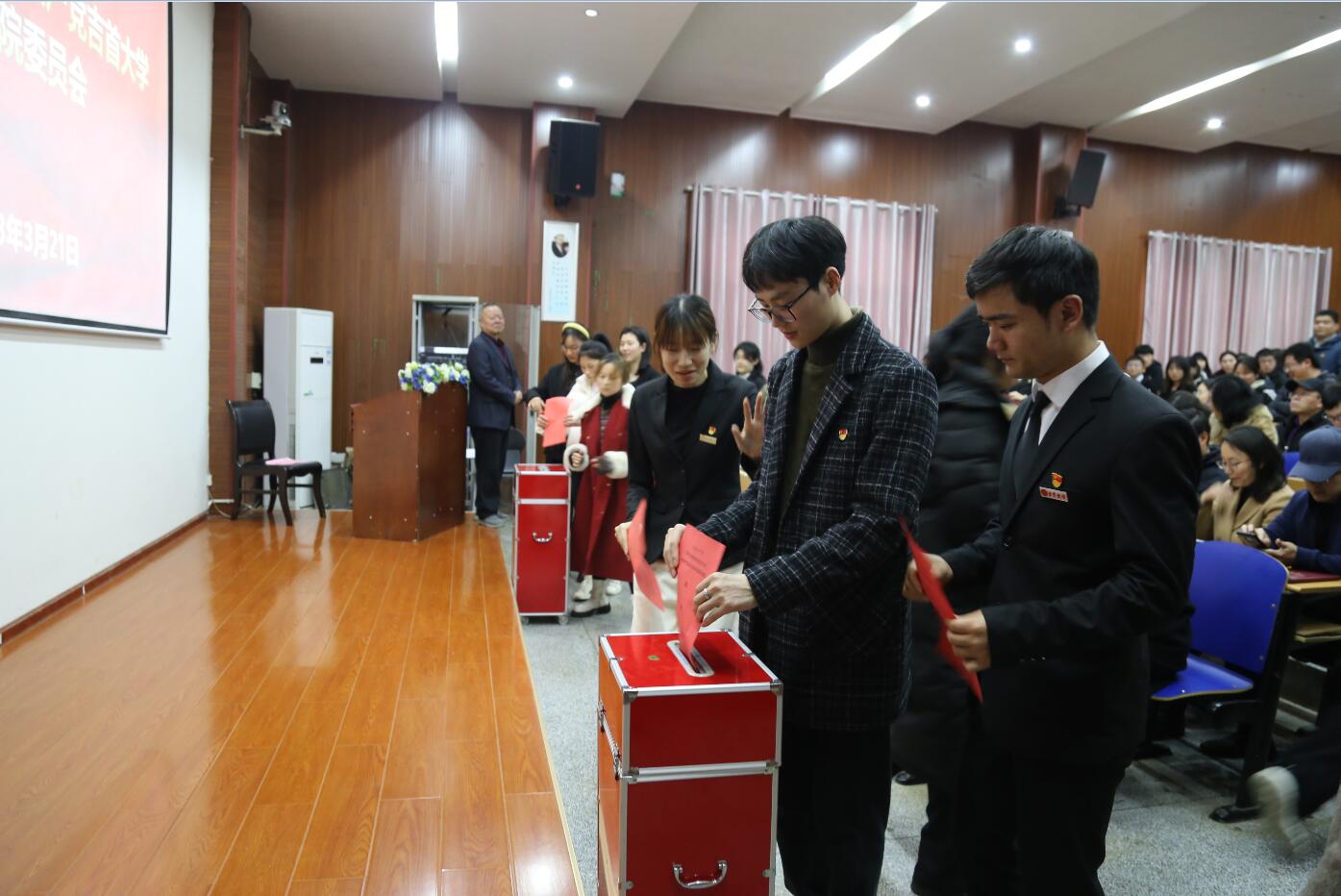 在监票人、计票人、唱票人清点人数,监票人检查投票票箱,计票人、唱票人领发选票后,大会选举正式开始。各位参会党员师生认真填写选票,并庄严地将选票投入投票箱。